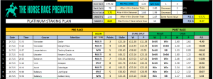 - All selections use the Platinum Staking Spreadsheet, with the Bet Type dependent on the odds and the spreadsheet settings.